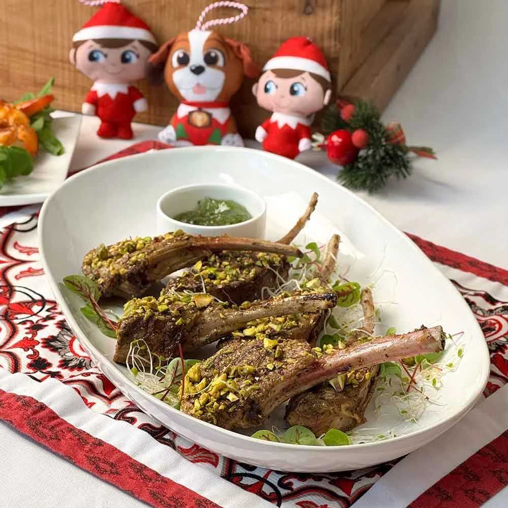 Grass-fed lamb cutlets, pistachio & mint gel DF, GF